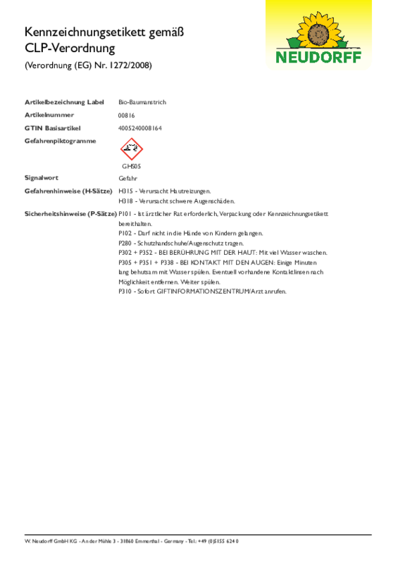 Vor Gebrauch gut schütteln und umrühren. Bio-Baumanstrich an