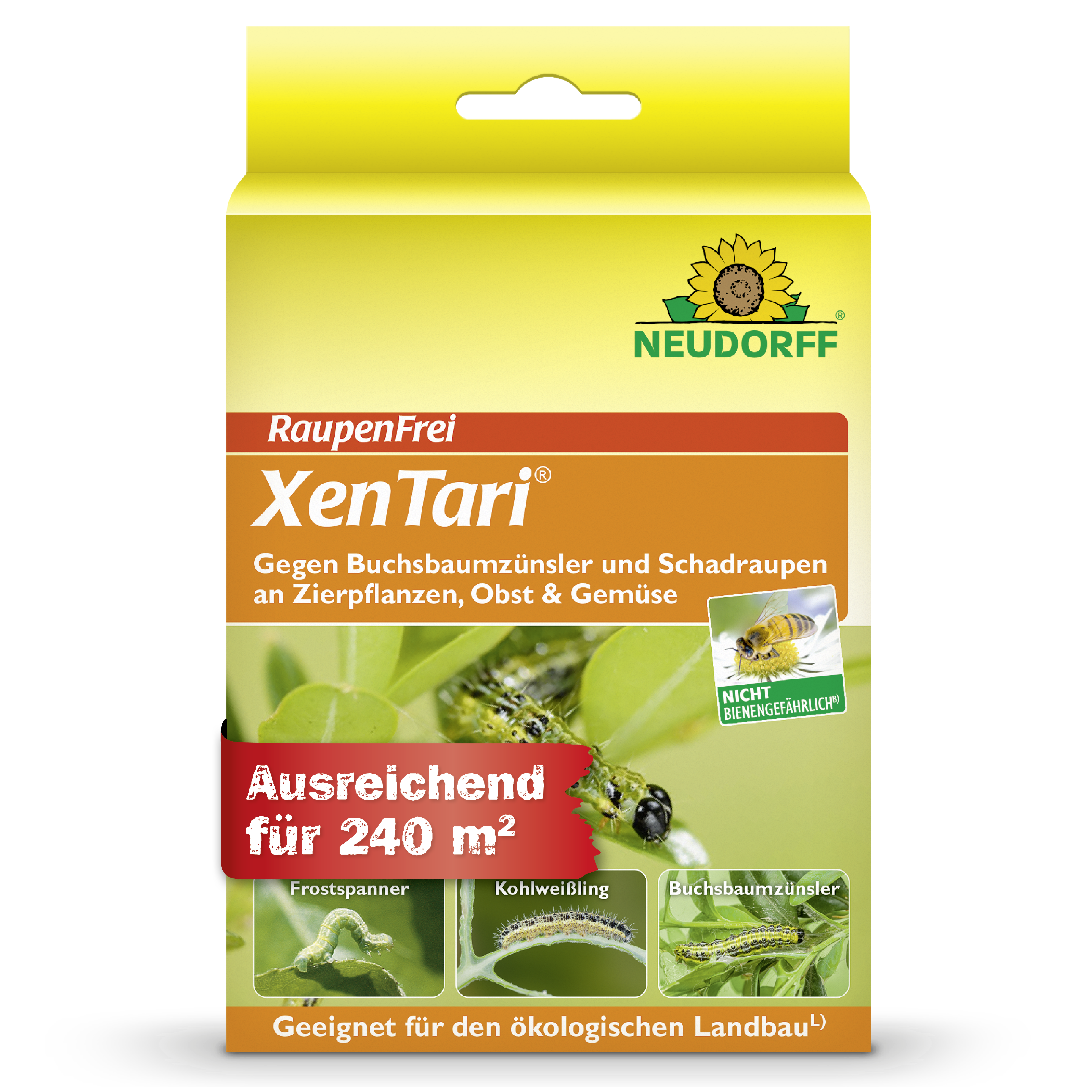 - Wirkt ganz gezielt gegen verschiedene Schmetterlingsraupen wie z.B. Buchsbaumzünsler, Frostspanner und Kohlweißlinge.